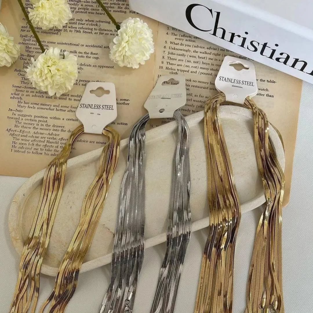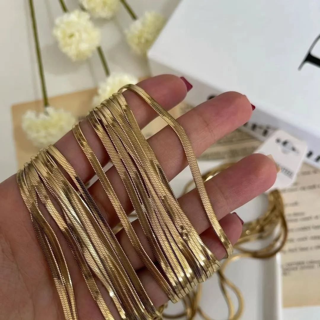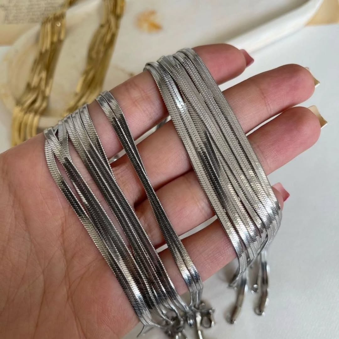 زنجیر هرینگبون ( ماری ) جنس : استیل ضد حساسیت رنگ ثابت ضخامت زنجیر ۴۵ سانت نقره ای زنجیر ۴۵ سانت طلایی زنجیر ۶۰ سانت نقره ای زنجیر ۶۰ سانت طلایی پابند طلایی پابند نقره ای دستبند طلایی دستبند نقره ای