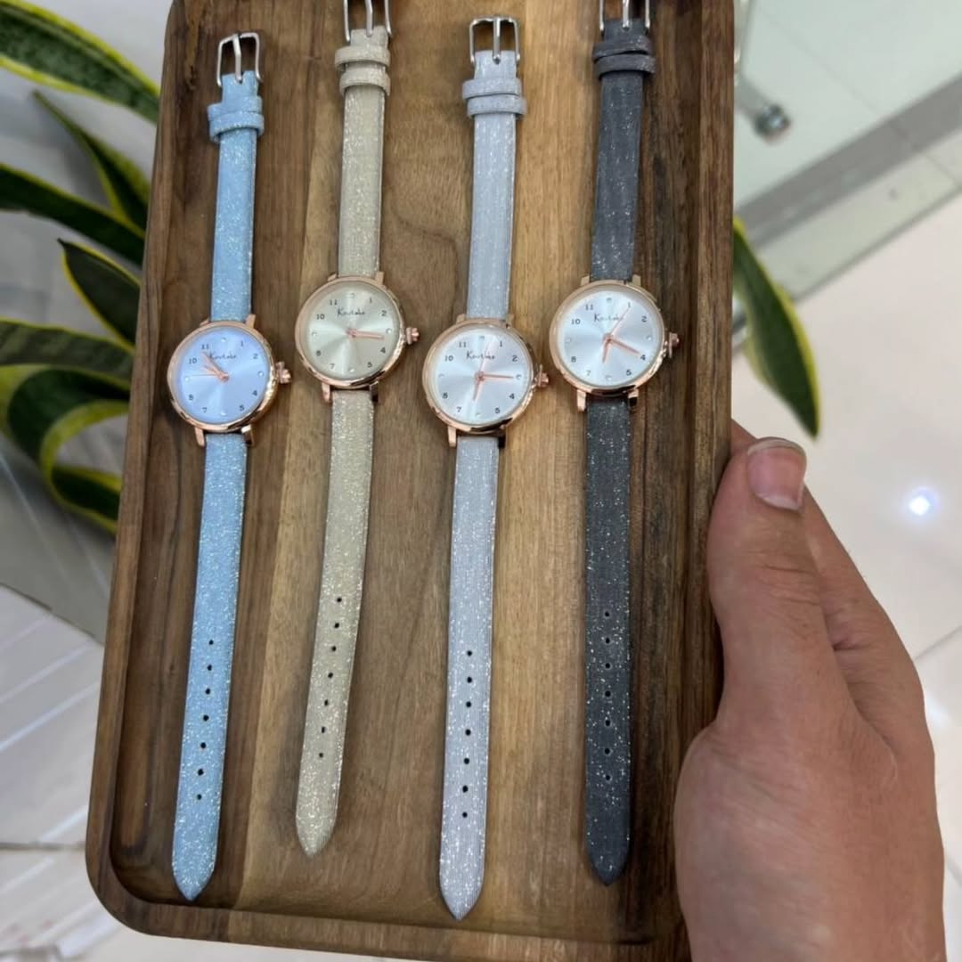 ساعت چرمی زنونه شرکتی تک موتور قاب رزگلد بندچرمی روکش شاین ضداب